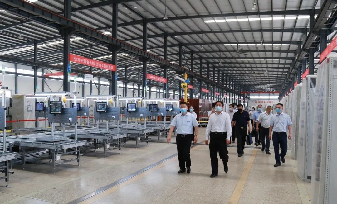 王兴於一行先后参观长江电气企业展厅,了解企业发展历程和经营情况;深入长江电气智能生产车间,参观企业新一代自主研发的C-smart互联网智能柜和自动化生产线,关切询问企业疫情防控、复工复产等情况。
