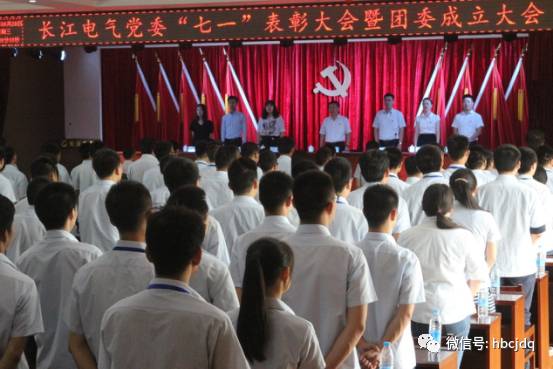 6月28日,在庄严的国歌声中,中共湖北长江电气有限公司党委庆祝建党96周年“七一”表彰大会暨团委成立大会,隆重拉开序幕。大会由长江电气党委副书记章庆主持,长江电气党委书记王新城,公司党委委员、公司董事会董事、全体党员及班组长以上干部参加了表彰大会。